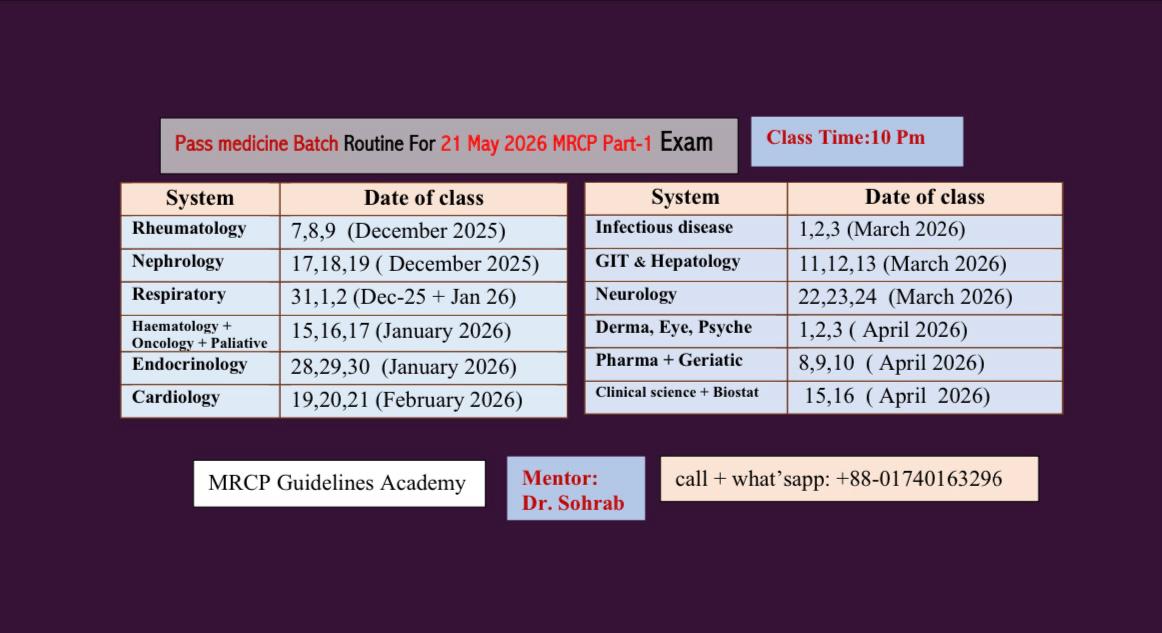 Course name: Pass medicine MRCP part-1 Class start :07.11.2025 Class ended: 21May 2026